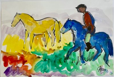 afbeelding: Gerrit Benner - In de wei (ca1970) gouache 34,5 x 50 cm