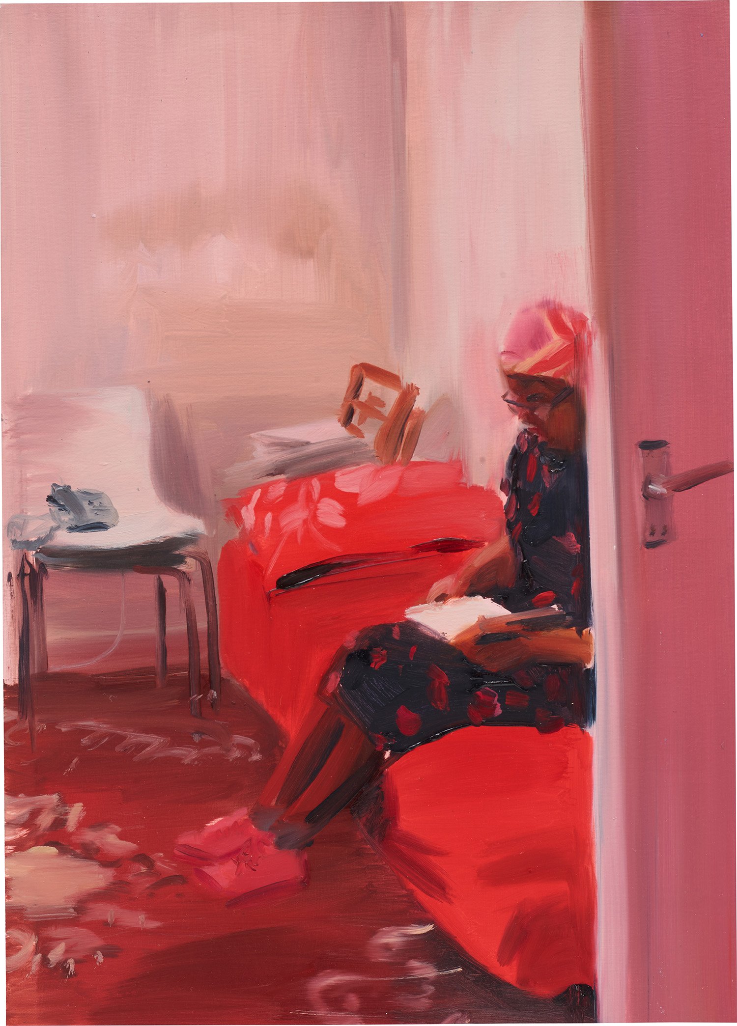 afbeelding: Caroline Walker (1982) - Joy, Hackney II (2017), olie op papier 43x31 cm.