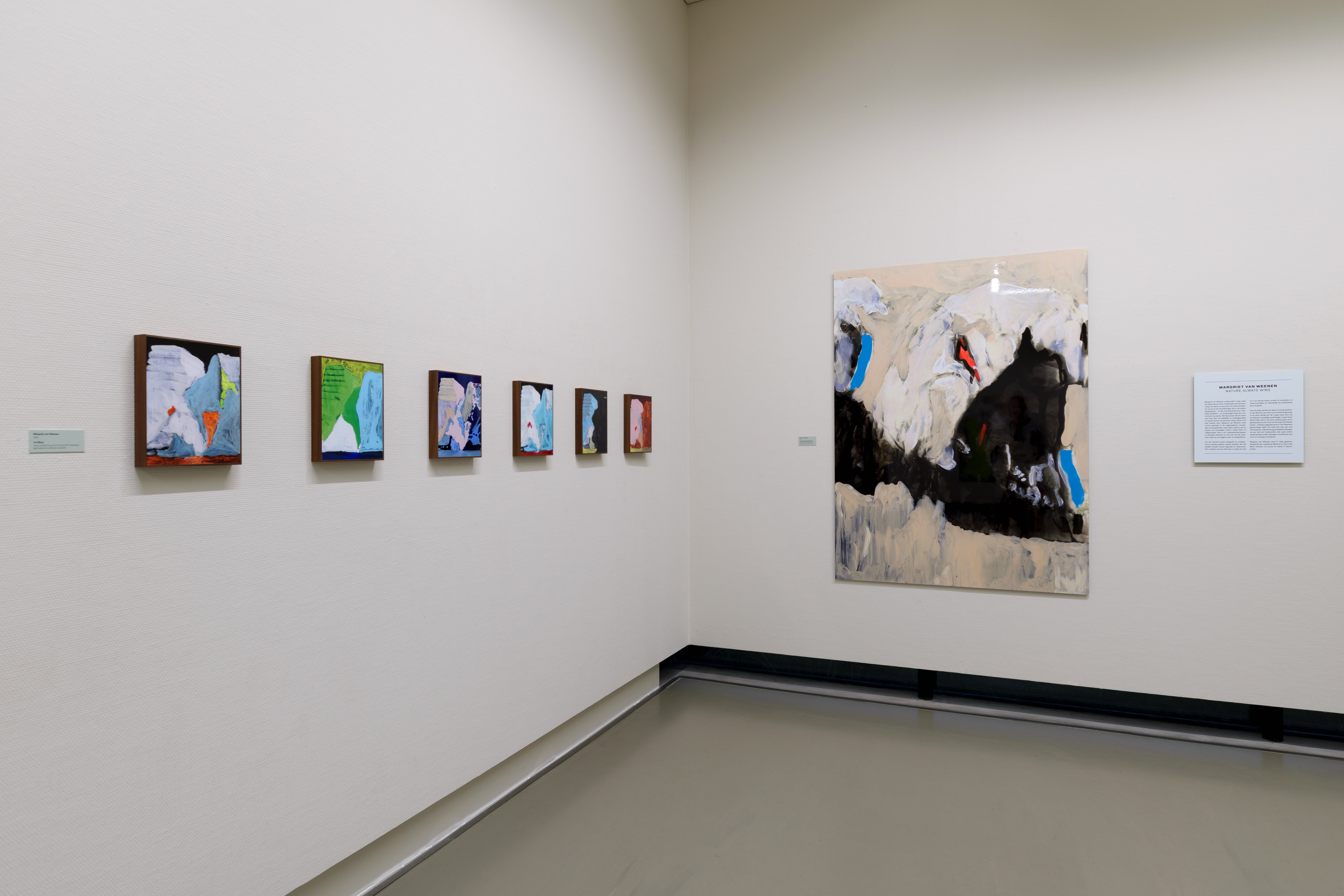 Margriet van Weenen onderzoekt in haar werk de relatie die de mens onderhoudt met het landschap, de natuur en de aarde. Ze richt zich daarbij vooral op de veranderingen die in de natuur plaatsgrijpen – al dan niet beïnvloed door menselijk handelen – en de gevolgen daarvan voor het leven op aarde. Het bewustzijn dat de mens niet meer dan een tijdelijke en ondergeschikte rol speelt binnen die grootse natuur klinkt in al haar werken door. Margriet van Weenen vindt vooral inspiratie in de ongenaakbare noordelijke koude-gebieden waar geen sporen zijn te vinden van menselijke cultuur.