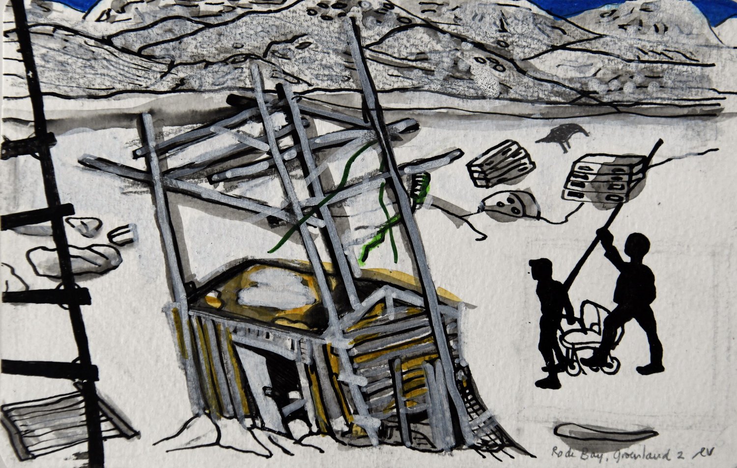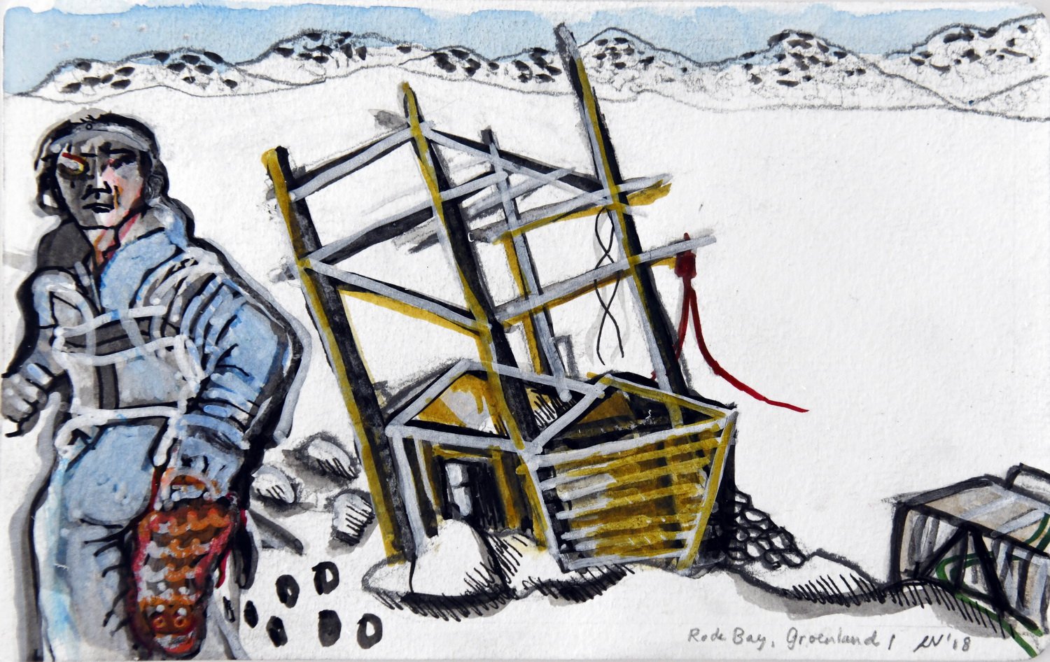 De installatie die in deze presentatie centraal staat, bestaat uit vier levensgrote Inuit vrouwen, een Deense dominee, een overheidsfunctionaris en de verpersoonlijking van de overal aanwezige dood. Naast deze installatie is er ook een serie portretten te zien van Inuit, een grote tekening met als titel De poolreiziger op weg naar Ittoqqortoormiit en kleine reistekeningen.