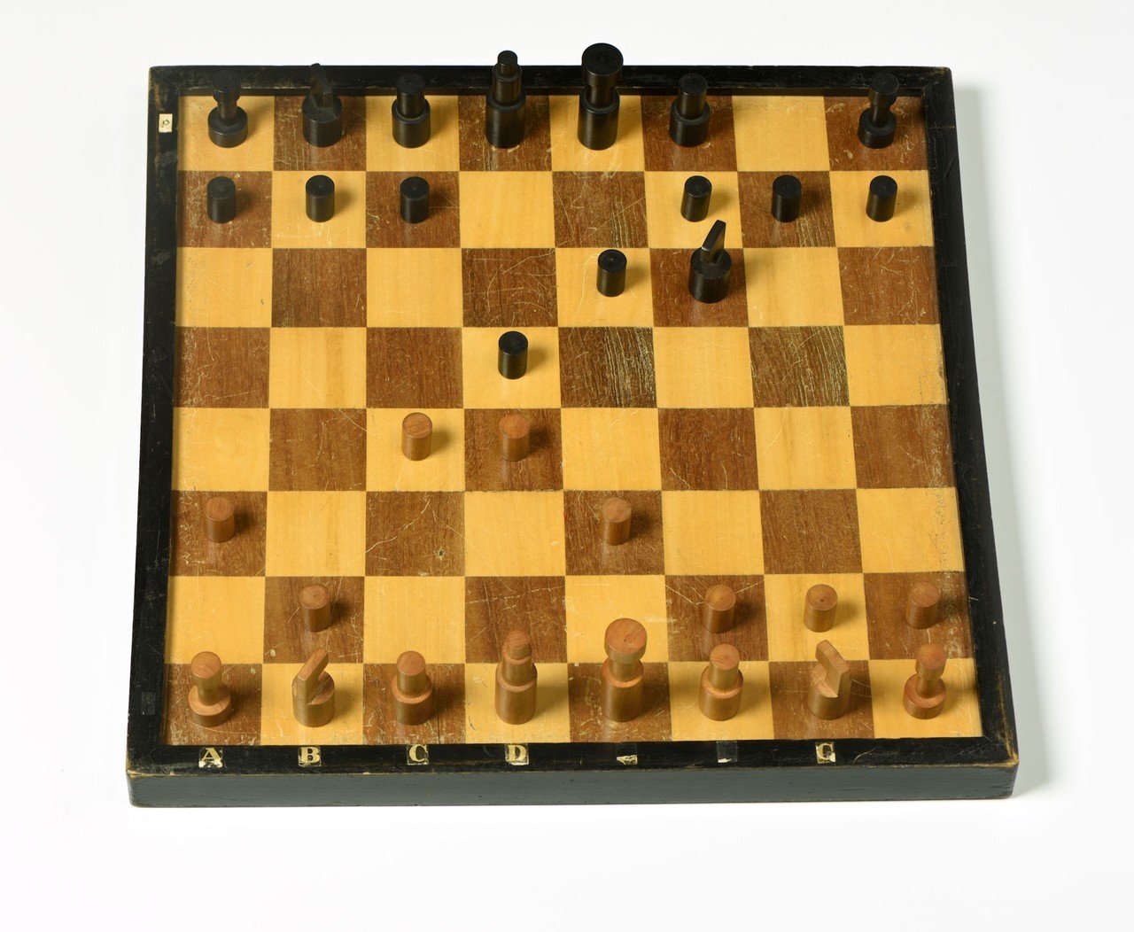 Marcel Duchamp en Man Ray behoren tot de bekendste schakende kunstenaars uit de moderne geschiedenis. Man Ray ontwierp in 1920 een iconisch dadaïstisch schaakspel, samengesteld uit gevonden objecten uit zijn atelier.